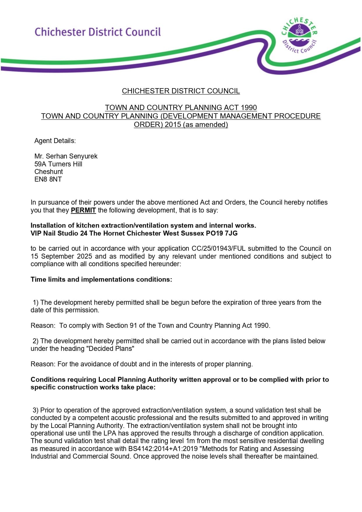 This project at 24 The Hornet, Chichester (PO19 7JG) involved preparing and securing planning permission from Chichester District Council for the installation of a kitchen extraction and ventilation system along with associated internal works for a commercial premises.